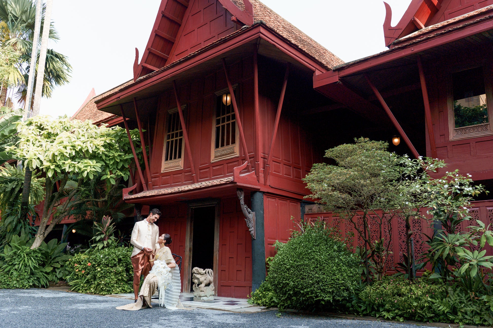 Capture your wedding moments at the iconic Jim Thompson House, surrounded by lush gardens and timeless Thai architecture.
