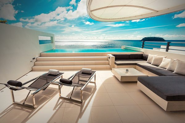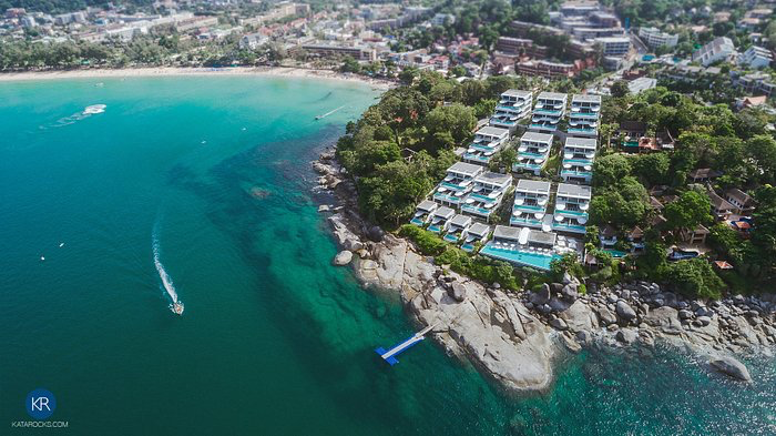 Kata Rocks presents an incredibly romantic oceanfront destination situated on a headland alongside two of the finest beaches in Phuket, Thailand. The resort's cutting-edge design is harmoniously complemented by unparalleled service delivered with a warm Thai smile. Each of Kata Rocks' 34 'Sky Villas' offers unobstructed sea views and a private infinity swimming pool. These luxurious Sky Villas seamlessly blend lavish indoor/outdoor living spaces, ensuring privacy, exceptional ocean vistas, ed concierge-style service.